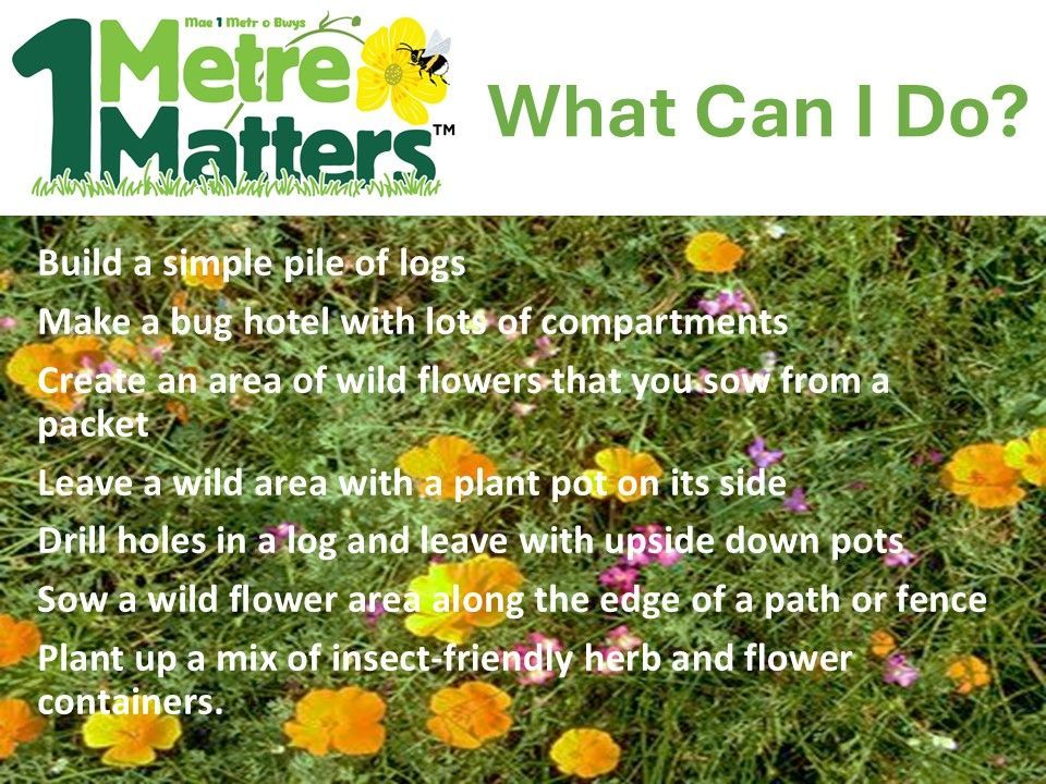 - Take action to create wildlife habitats, in all sorts of places, specifically to increase the number and range of pollinators, of all shapes and sizes.